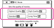 Voit vaihtaa tallennustilaa valitaksesi videolaadun kuvatessasi teräväpiirtolaatuisia (HD) videoita. Tallennusvälineen tallennusaika vaihtelee tallennustilan mukaan.