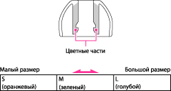 Перед поставкой на наушники устанавливаются накладки размера M. Если накладки размера M не подходят для ваших ушей, замените их накладками размера S или L (прилагается). Размер накладок можно проверить, посмотрев цвет их внутренней поверхности.