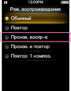 [На Экран Воспроизв.] могут не отображаться.Например, действия по установке для параметра [Реж. воспроизведения] значения [Произв. воспр-е] показаны далее.