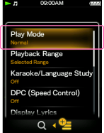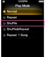 [To Playback Screen]-ikonen visas eventuellt inte beroende på skärmen.Till exempel, visas åtgärderna för hur du ställer in alternativet [Play Mode] på [Shuffle] nedan.