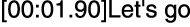 Spela upp ljudfilen för att kontrollera tiden [minuter:sekunder:hundradelar av en sekund] för att visa varje textrad, mata därefter in tidsinformationen till vänster om textraden.
