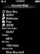 Müzik çalma ekranında gösterilen seçenek öğeleri