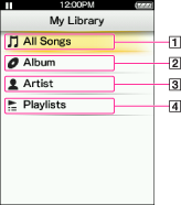 Можете да слушате определени песни, като изберете от [All Songs], [Album], [Artist] или [Playlists]. Можете също да търсите желаната песен с функцията за търсене.
