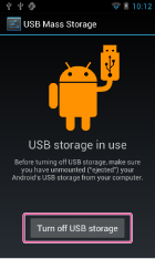 Pokud se toto hlášení na obrazovce nezobrazí, přejeďte přes stavový řádek a na oznamovacím panelu klepněte na položku [Turn off USB storage].