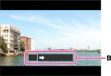 Выполните с помощью фотоаппарата панорамную съемку до конца направляющей полосы (B) в соответствии с индикатором на экране.