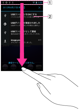 ステータスバーをドラッグすると通知パネルが表示されます。通知パネルでは、通知の詳細を確認することができます。