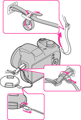 Przymocuj pasek na ramię oraz pasek osłony na obiektyw, aby zapobiec uszkodzeniu aparatu przez upuszczenie.