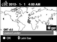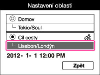 Používáte fotoaparát nastavený na čas cíle vaší cesty. Nastavte cílovou oblast.