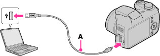 Fotoğraf makinesini özel USB kablosunu (ürünle verilir) (A) kullanarak bilgisayarınıza bağlayın.