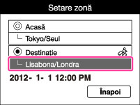 Folosiţi aparatul foto setat după ora destinaţiei dvs. Setaţi zona de destinaţie.