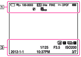 Numero di immagine/Numero di immagini registrate nel modo visione selezionato