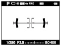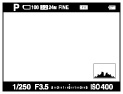 Zeigt grundlegende Aufnahmeinformationen an. Verschlusszeit und Blendenwert werden grafisch dargestellt.