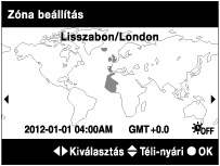 gombot a vezérlőkeréken, vagy a vezérlőkerék forgatásával válassza ki a kívánt területet, majd a téli-nyári időszámítási időt a