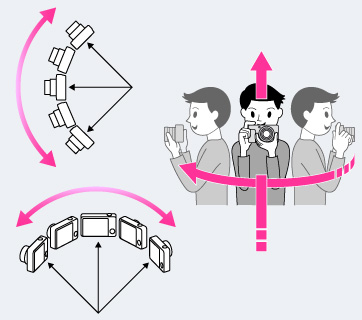 ก่อนอื่น ให้ท่านกดปุ่มชัตเตอร์ลงครึ่งหนึ่ง เพื่อล็อคโฟกัส ระดับแสง และสมดุลแสงสีขาว จากนั้นให้กดปุ่มชัตเตอร์ลงจนสุด แล้วจึงกวาดหรือหมุนกล้อง