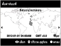 กด / บนปุ่มหมุนควบคุมหรือหมุนปุ่มหมุนควบคุม เพื่อเลือกบริเวณที่ต้องการ แล้วเลือกเวลาฤดูร้อนด้วย /