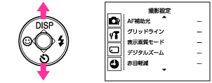 コントロールボタンの/で(設定)を選び、中央ので設定画面を表示する