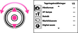 [Tagningsinställningar] visas bara när inställningar har matats in från tagningsläget.