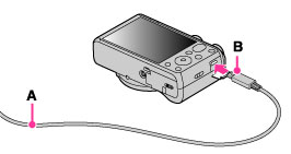 Når meldingen om å koble kameraet til datamaskinen vises, kobler du det til mikro-USB-kabelen (inkludert) (A).