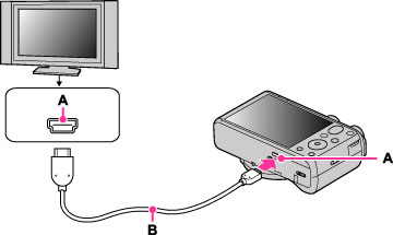 Pri spajanju fotoaparata na TV prijemnik, upotrijebite HDMI kabel koji se može spojiti na mini HDMI priključak na fotoaparatu i na priključnicu za TV prijemniku.