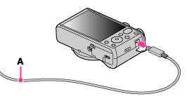 Conectaţi aparatul foto la computer prin intermediul unui cablu micro USB (livrat) (A).