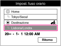 L’impostazione di una destinazione visitata abitualmente consente di regolare facilmente l’ora quando si visita quella destinazione.