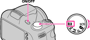 اضبط قرص الوضع على (وضع الفيلم)، ومن ثم اضغط الزر ON/OFF (طاقة).