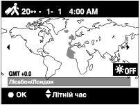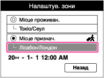 Фотоапарат використовується із часом, встановленим для регіону подорожі. Встановіть регіон.