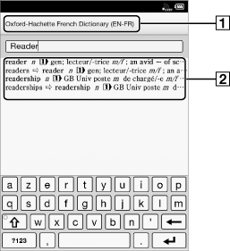 Seuls les dictionnaires inclus sur le Reader peuvent être utilisés. Il est impossible d’installer ou d’ajouter de nouveaux dictionnaires.
