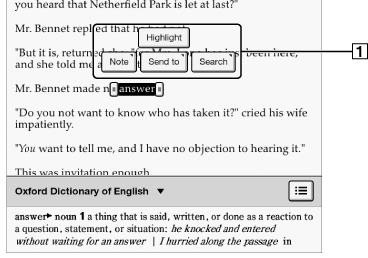 Tryk på et fremhævet ord, og hold fingeren på ordet.