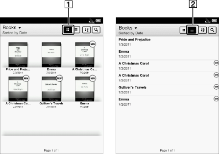 Titlarna på vissa böcker/tidskrifter kan kortas ner om de är för långa. För att undvika detta kan du ställa in Reader för att visa titlar på två rader i stället för på en rad.
