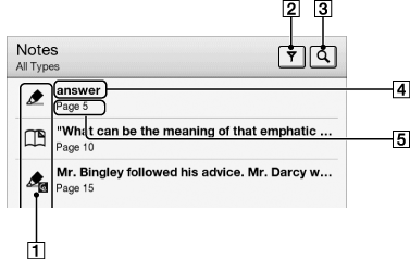 För att söka efter anteckningar i den bok/tidskrift som är öppen trycker du på knappen