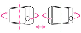 カメラ本体の中心を軸にして、左右に傾ける