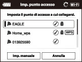 Prima di avviare la procedura, controllare il nome SSID del punto di accesso, il sistema di sicurezza e la password. La password potrebbe essere preimpostata in alcuni dispositivi. Per i dettagli, consultare il manuale di istruzioni del punto di accesso wireless o rivolgersi all’amministratore di rete.