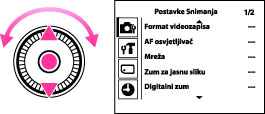 [Postavke Snimanja] pojavljuje se samo kad se prikaz postavki otvori iz načina snimanja.