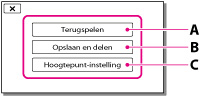 Wanneer u de camcorder aansluit op een extern apparaat, bijvoorbeeld een TV, en Gemarkeerde weergave bekijkt, worden deze beelden niet weergegeven op het LCD-scherm van de camcorder.