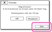 Ha nem folytatja a [Ürít] műveletet, miközben megjelenik a [Folyamatban...] üzenet, a videokamera legközelebbi használatakor mindenképpen fejezze be a műveletet a [Formáz] vagy az [Ürít] művelet végrehajtásával.