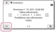 Po podłączeniu kamery do urządzenia zewnętrznego, np. do telewizora, Scenariusz z Zaznaczenia nie jest wyświetlany na ekranie LCD kamery.