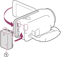 캠코더의 들어간 부분과 배터리 팩의 돌기 부분을 일치시킨 후 배터리 팩을 위로 미십시오.