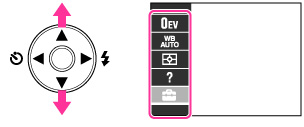 コントロールボタンの/で(設定)を選び、中央ので設定画面を表示する