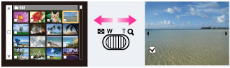 一覧表示、1枚再生を切り換えながら選ぶには一覧表示時にT側(