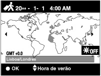 no botão de controlo para selecionar a área desejada, depois selecione Hora de verão usando