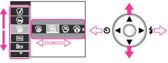 (Vaku).Ha a vezérlőgombot egy ikon irányába nyomja, akkor megjelenik az adott funkció beállítási képernyője.