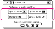 Vous pouvez changer le mode d'enregistrement afin de sélectionner la qualité du film pendant que vous tournez un film au mode de qualité d'image haute définition (HD). Le temps d'enregistrement du support est modifié selon le mode d'enregistrement.