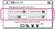 Vous pouvez changer de mode d’enregistrement pour sélectionner la qualité du film lors de l’enregistrement de films avec une qualité d’image haute définition (HD). La durée de l’enregistrement du support est modifiée selon le mode d’enregistrement.