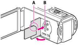 Achten Sie auf die richtige Ausrichtung der Speicherkarte. Wenn Sie die Speicherkarte falsch herum einsetzen, können die Speicherkarte, der Speicherkarten-Einschub oder die Bilddaten beschädigt werden.