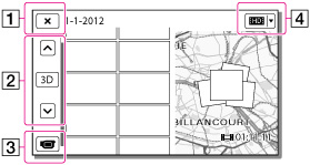 Wiedergabe von Filmen und Fotos von einer Landkarte (HDR-TD30VE)