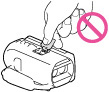 na pieskovej pláži alebo v ľubovoľnom inom prašnom prostredí. Po vniknutí piesku alebo prachu do kamkordéra už kamkordér nemusí pracovať správne. Táto porucha sa v niektorých prípadoch nedá odstrániť,