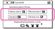 W przypadku nagrywania filmów w wysokiej rozdzielczości (HD) istnieje możliwość zmiany trybu nagrywania, który decyduje o jakości filmu. Czas nagrywania na nośniku zapisu zależy od trybu nagrywania.