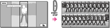 Если видеокамера не может обнаружить звука удара клюшки по мячу, видеокамера автоматически устанавливает момент удара за 0,5 секунды до нажатия кнопки START/STOP и записывает фильм в промежуток времени между 1,5 секунды до момента удара до 0,5 секунды после момента удара.