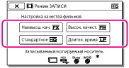 Вы можете переключить режим записи для выбора качества фильма при записи фильмов с качеством изображения высокой четкости (HD). Время записи носителя меняется в зависимости от режима записи.